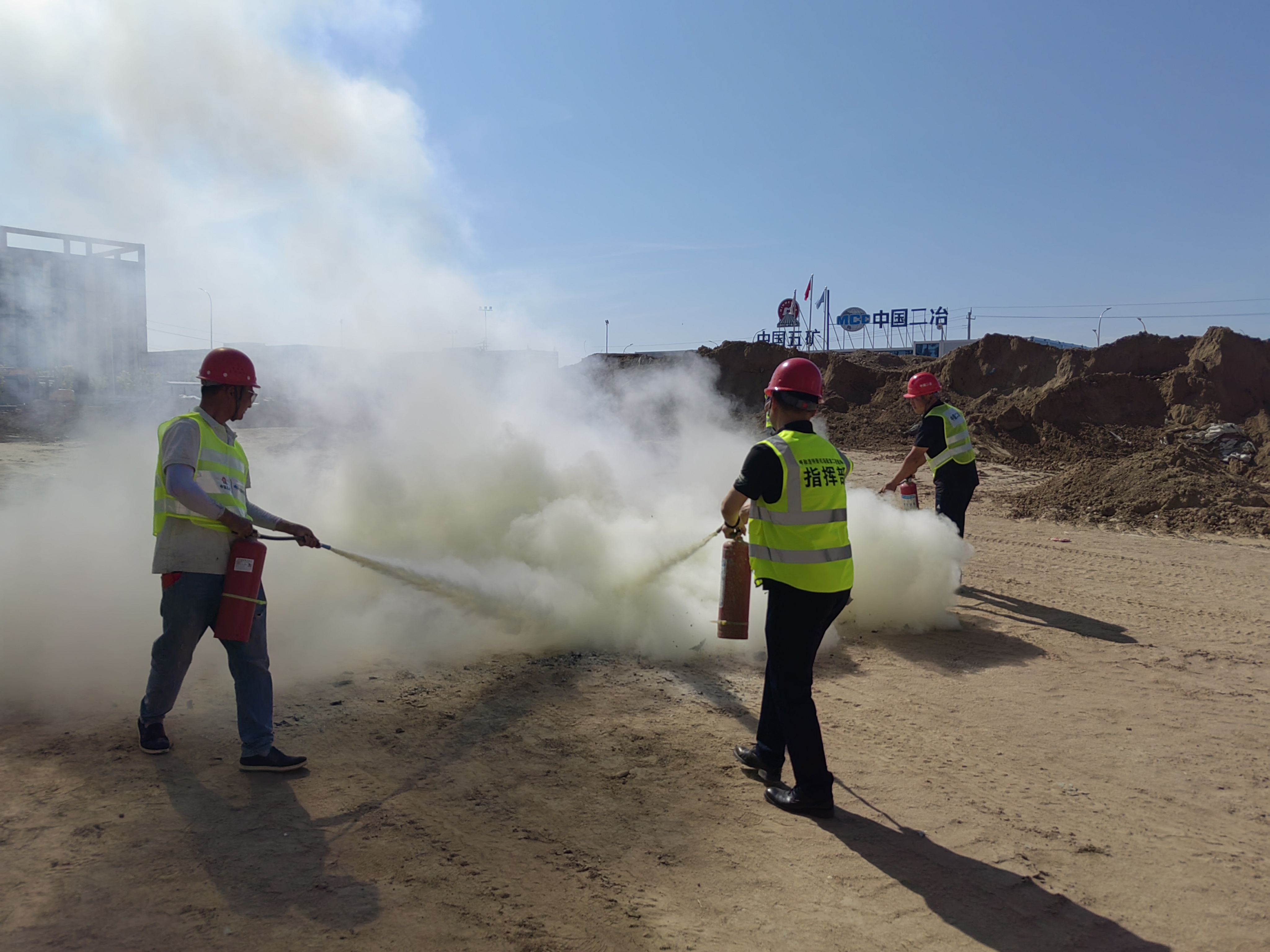 此次演練模擬在呼市浩特新機(jī)場業(yè)務(wù)用房項(xiàng)目施工現(xiàn)場局部因高溫發(fā)生火災(zāi),項(xiàng)目部第一時(shí)間得到報(bào)警消息,立即啟動(dòng)消防應(yīng)急演練預(yù)案,應(yīng)急演練總指揮、信息組、警戒組、事故記錄調(diào)查組各負(fù)其責(zé),迅速趕往事發(fā)地點(diǎn),查看火勢情況,設(shè)立警戒線,同時(shí),身穿黃馬甲的滅火組成員立即趕往起火點(diǎn),在總指揮的一聲令下,一字排開將白色泡沫噴向熊熊大火,火勢立即減弱,演練氣氛達(dá)到高潮,隨著最后的火源被撲滅,標(biāo)志著本次演練圓滿完成。演練過程緊張有序,各小組分工明確、配合緊密,從火災(zāi)的預(yù)警信息接收、應(yīng)急響應(yīng)啟動(dòng)、現(xiàn)場應(yīng)急處置到火災(zāi)撲滅,再到后續(xù)的事故調(diào)查,整個(gè)演練流程環(huán)環(huán)相扣,高效規(guī)范,充分展現(xiàn)了項(xiàng)目部應(yīng)急救援隊(duì)伍的專業(yè)素養(yǎng)和協(xié)同作戰(zhàn)能力,為實(shí)戰(zhàn)積累了寶貴經(jīng)驗(yàn)。