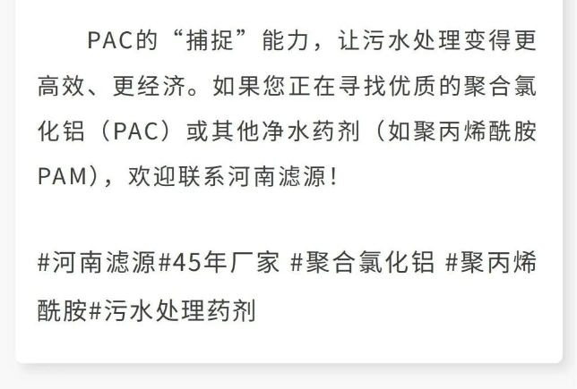PAC如何“抓”住污水中的雜質?揭秘污水處理的高效凈水劑! 咨詢熱線:15638187355 在線咨詢 產品詳細 上一篇:為什么電廠脫硫只用工業級PAC?90%貿易商不知道的真相 下一篇:《從渾濁到清澈:PAC過量投加的反效果與精確控制方法》 用手機看 拍下二維碼,信息隨身看 試試用手機掃一掃,在你手機上繼續觀看此頁面。