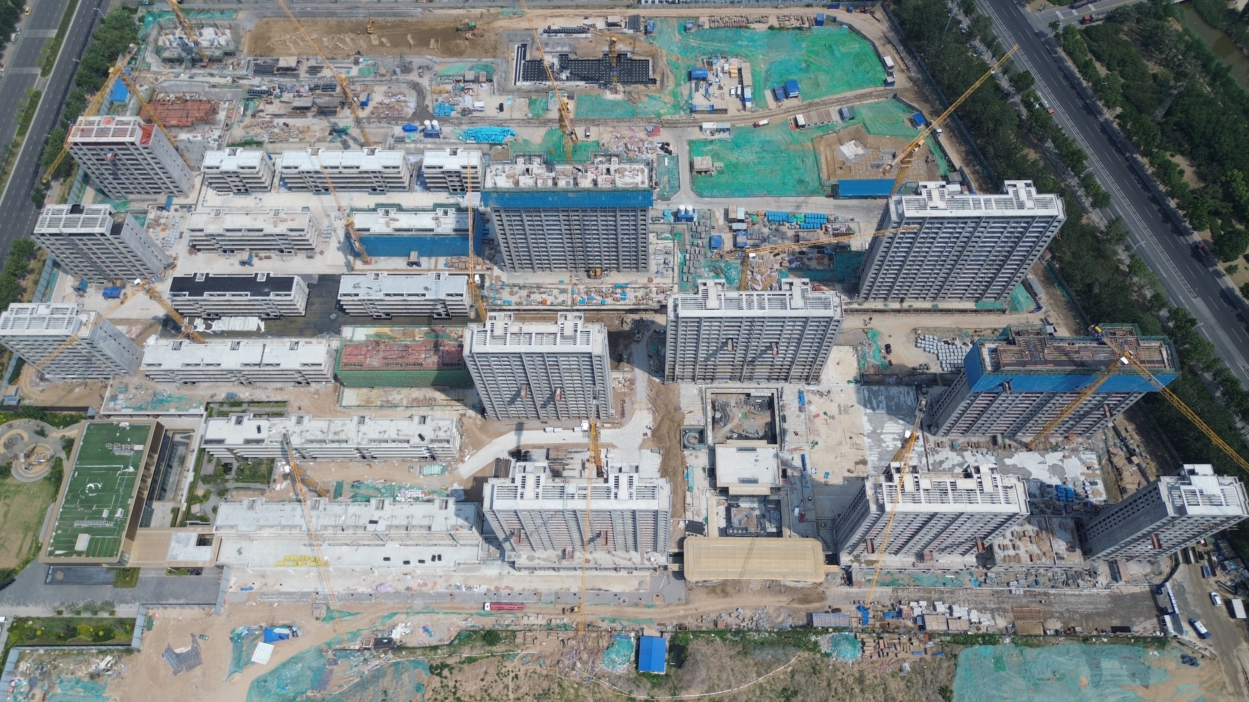 該工程位于山東省濱州市博興縣,樂安大街以東,原205國道以西,碧桂園星薈以北。項(xiàng)目建設(shè)用地面積約為22.35萬平方米,總建筑面積約52.45萬平方米。面對15棟單體建筑的復(fù)雜布局,施工團(tuán)隊(duì)科學(xué)統(tǒng)籌工序,2025年4月已完成13棟封頂,剩余2棟同步推進(jìn)主體工程,最終實(shí)現(xiàn)全面封頂目標(biāo)。為保證項(xiàng)目建設(shè)質(zhì)量,項(xiàng)目管理團(tuán)隊(duì)采用三級質(zhì)檢體系,嚴(yán)格執(zhí)行“自檢、互檢、專檢”三檢制度,全面推行“樣板引路”標(biāo)準(zhǔn)化作業(yè)。在鋼筋工程中,團(tuán)隊(duì)將鋼筋間距誤差精準(zhǔn)控制在±5毫米以內(nèi),遠(yuǎn)高于行業(yè)標(biāo)準(zhǔn)。