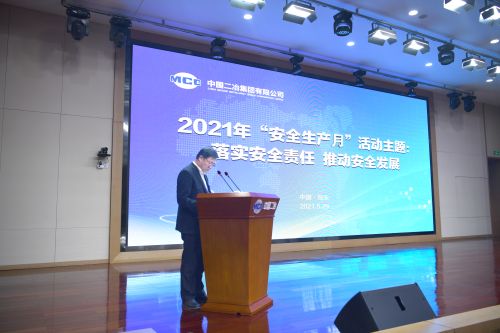 儀式上,主分會場參會人員共同觀看安全生產教育警示片。工作人員宣讀《中國二冶集團2021年“安全生產月”活動方案》。外地五個區域公司設置了分會場與公司同步進行,其中分會場甘肅分公司、四川分公司、華東分公司主要領導作表態發言。