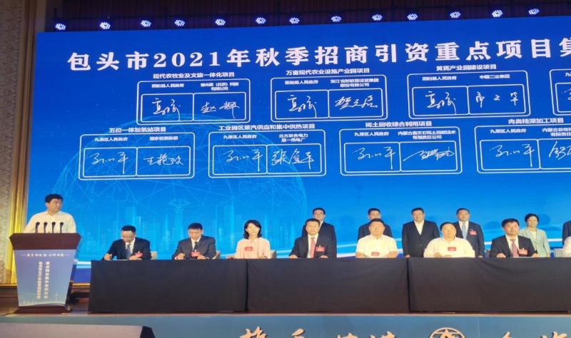 本次集中簽約項(xiàng)目共 45 個(gè),計(jì)劃總投資 1160 億元,涉及 14 個(gè)產(chǎn)業(yè)領(lǐng)域。簽約大會(huì)由中共包頭市委員會(huì)、包頭市人民政府主辦。本次大會(huì)簽約項(xiàng)目主要集中在綠色低碳領(lǐng)域。通過現(xiàn)場(chǎng)簽約與網(wǎng)絡(luò)簽約相結(jié)合的模式。其中,現(xiàn)場(chǎng)簽約項(xiàng)目共26個(gè)、網(wǎng)絡(luò)視頻簽約項(xiàng)目共19個(gè),共簽訂合作項(xiàng)目45個(gè),簽約項(xiàng)目中涉及世界500強(qiáng)企業(yè)6個(gè)、中國500強(qiáng)企業(yè)4個(gè)、中國民營500強(qiáng)企業(yè)2個(gè)。計(jì)劃總投資 1160億元,助力綠色低碳環(huán)保循環(huán)經(jīng)濟(jì)持續(xù)發(fā)展。
