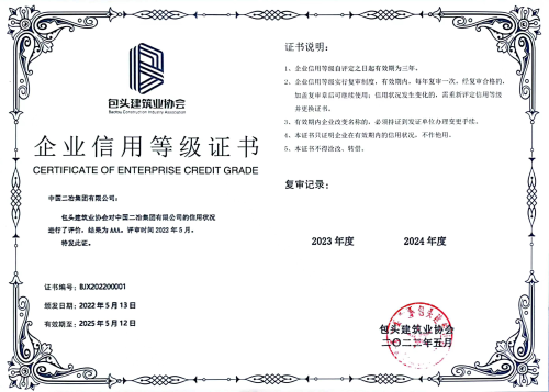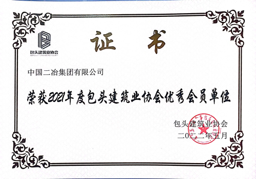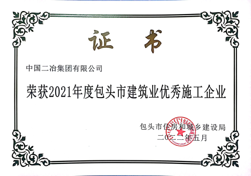 中國二冶獲評“2021年度包頭市建筑業優秀施工企業”