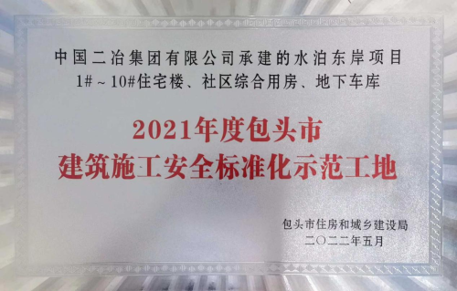 中國二冶兩項工程榮獲“2021年度包頭市建筑施工安全標準化示范工地”榮譽稱號