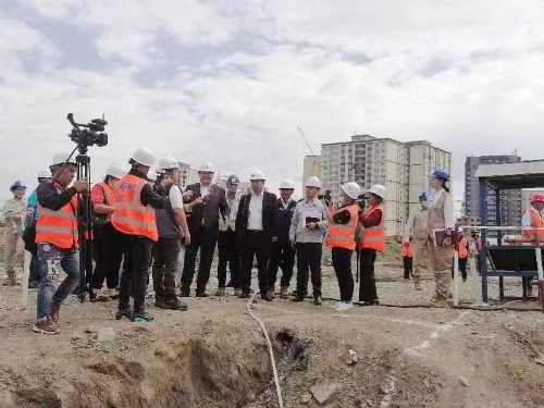 8月14日,蒙古國建筑與城市建設(shè)部部長孟和巴特爾一行到中華人民共和國援建、中國二冶承建的蒙古國棚戶區(qū)改造項目檢查指導(dǎo)工作并提出要求。