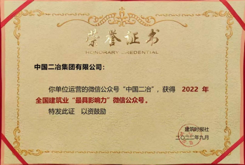 中國二冶微信公眾號獲評 “全國建筑業(yè)最具影響力微信公眾號”
