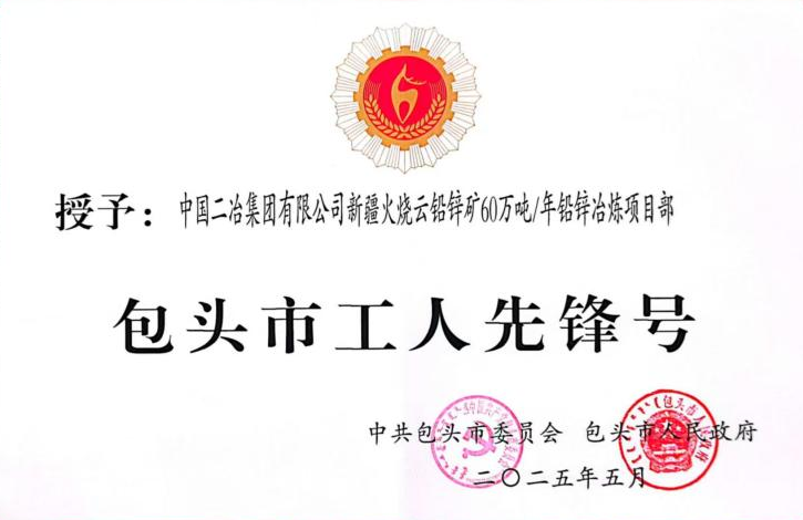 近日,中共包頭市委員會(huì)包頭市人民政府公布關(guān)于表彰包頭市五一勞動(dòng)獎(jiǎng)的決定,中國(guó)二冶新疆火燒云鉛鋅礦60萬(wàn)噸/年鉛鋅冶煉工程項(xiàng)目榮獲“2025年包頭市工人先鋒號(hào)”榮譽(yù)稱(chēng)號(hào)。